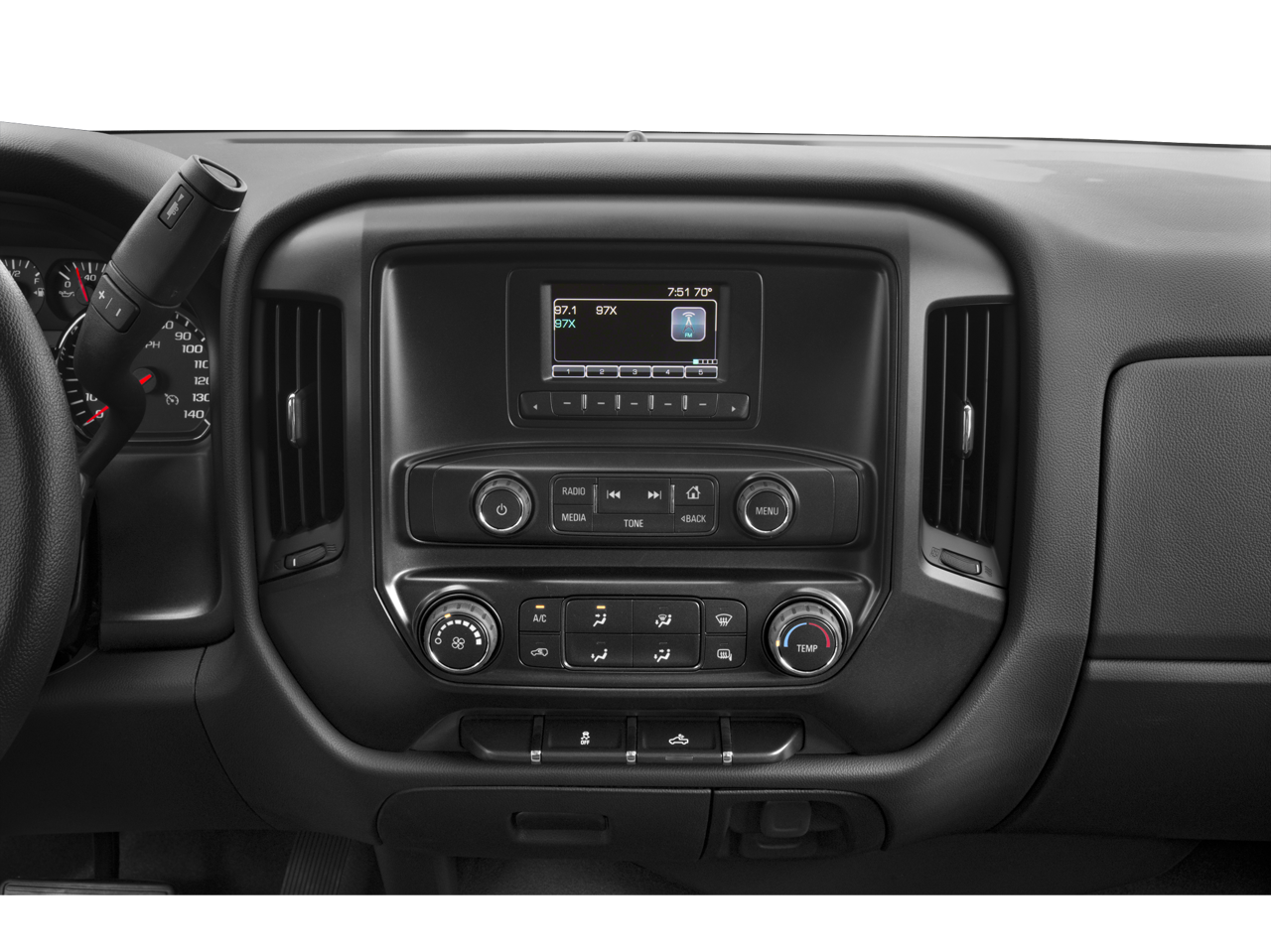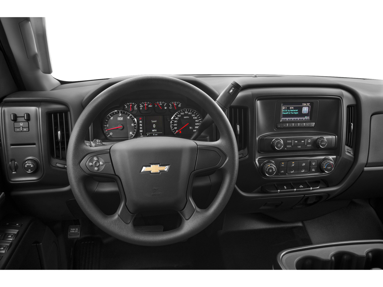 - 6-speaker audio system (Standard on Crew Cab and Double Cab models and Included and only available on Regular Cab models with (IOB) 7" diagonal color touch screen display radio with Chevrolet MyLink.)